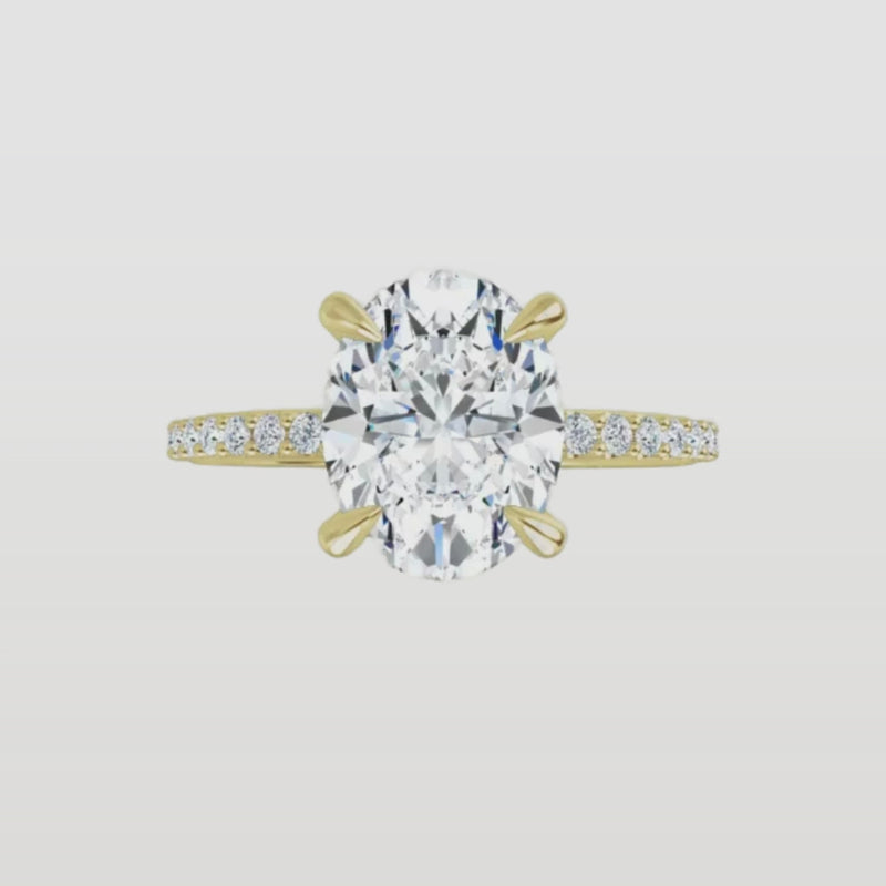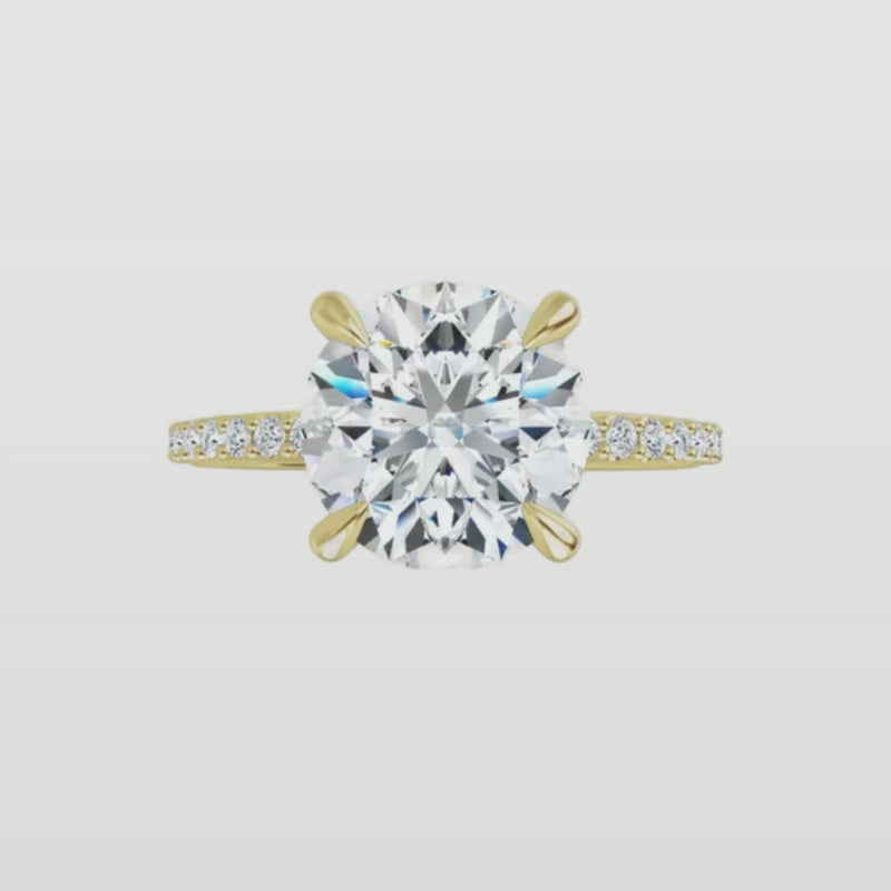 Elegant designs with a subtle circle of diamonds beneath the center stone for extra sparkle.