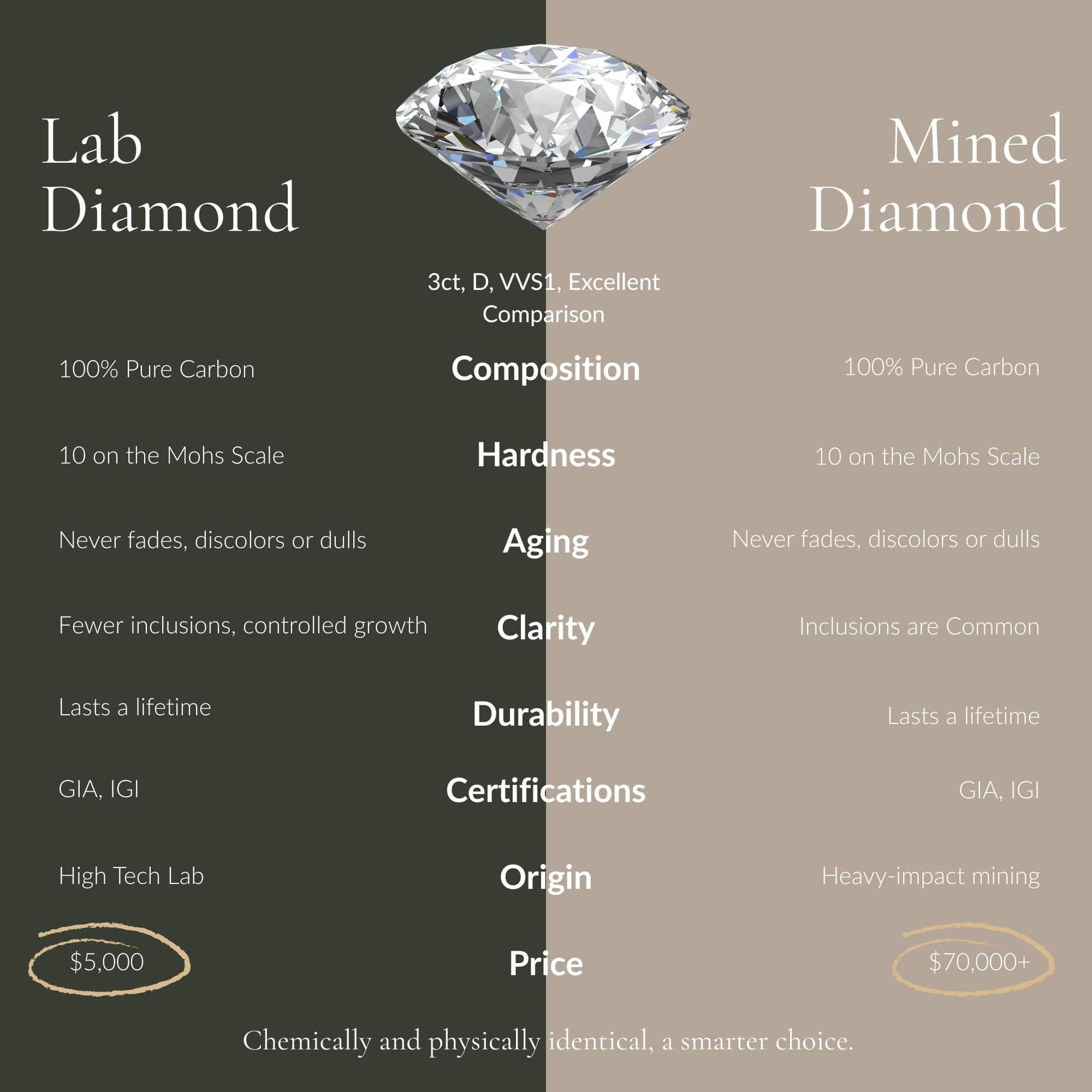 Every lab diamond begins as pure carbon — just like mined. Advanced technology recreates the natural growing process, producing diamonds that are indistinguishable from the ones formed underground, but in a way that’s cleaner, more ethical, and more affordable.