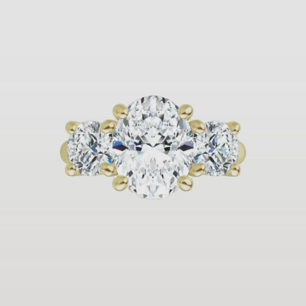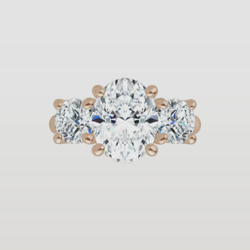This iconic three-stone design brings balance and meaning. The center diamond stands tall, flanked by two equally beautiful side stones that add sparkle without distraction—symbolizing everything you’ve shared, everything you are, and all that lies ahead.