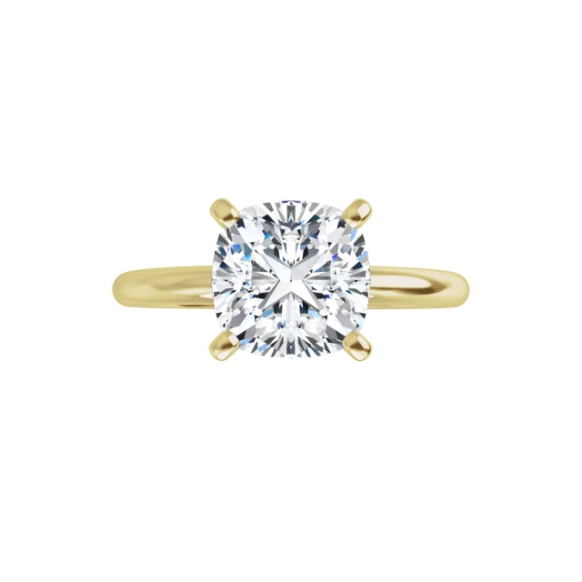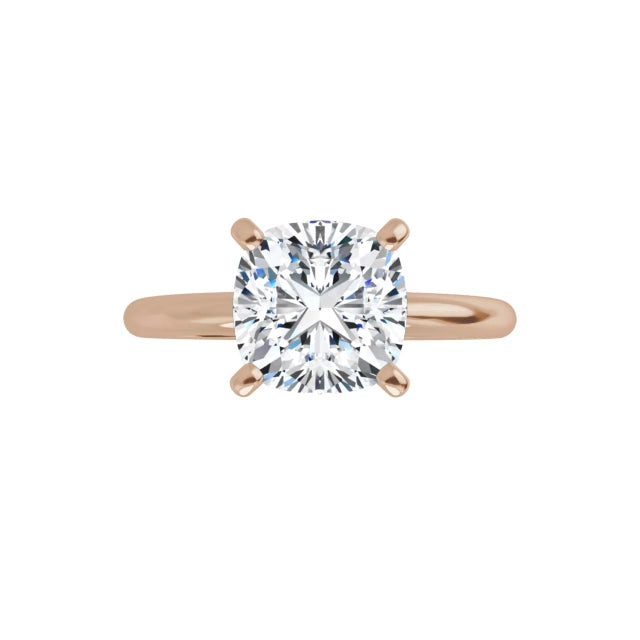 Available in 14k recycled gold—choose from yellow, white, or rose—the slim band offers both comfort and durability while keeping the focus exactly where it should be: on the diamond. Whether you choose round, emerald, oval, pear, or cushion, this design ensures the stone takes center stage, shining with clarity and meaning.
