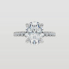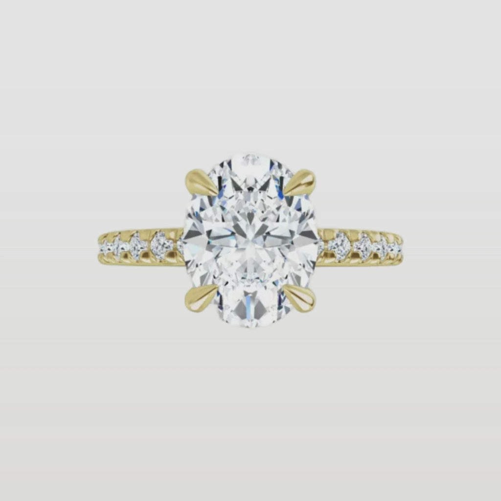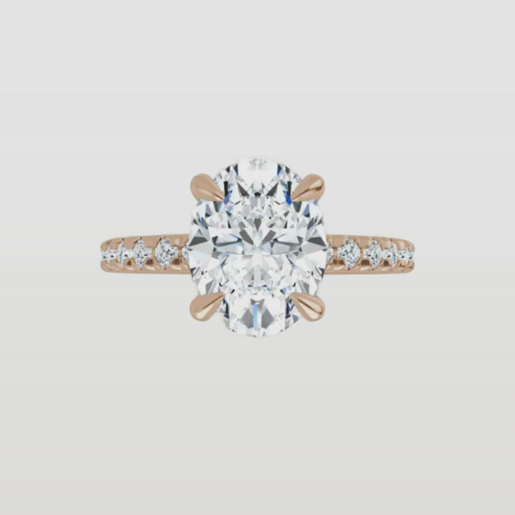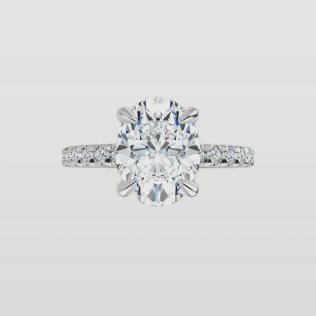 This pavé engagement ring enhances your center diamond with a row of delicate accent stones along the band, increasing its brilliance without overshadowing its beauty. The result is understated elegance that feels familiar and radiant.
