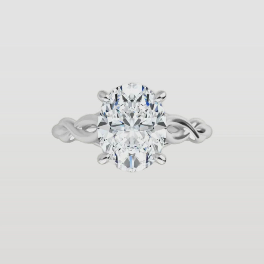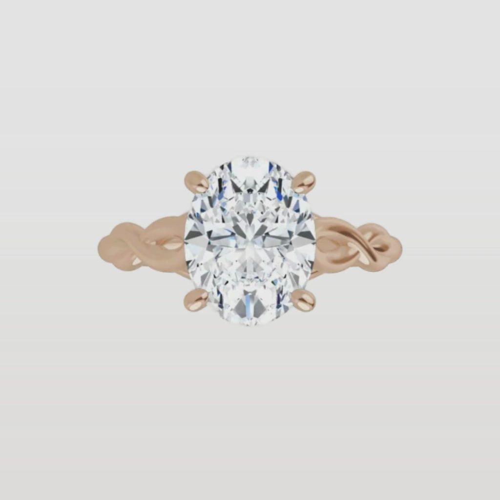 This ring features a softly twisted band that adds subtle movement and charm, guiding the eye toward the center diamond in a graceful embrace. The design feels modern, yet timeless, and allows the stone’s brilliance to shine without distraction.