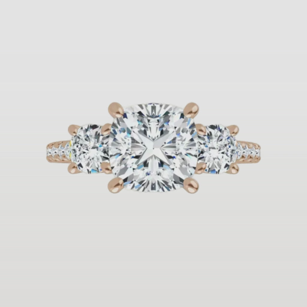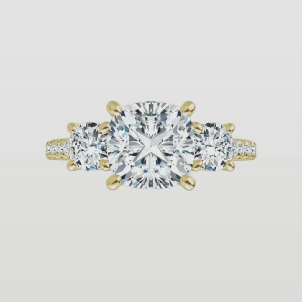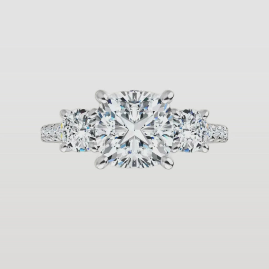 The Iconic 3-Stone Pavé Engagement Ring | Cushion