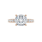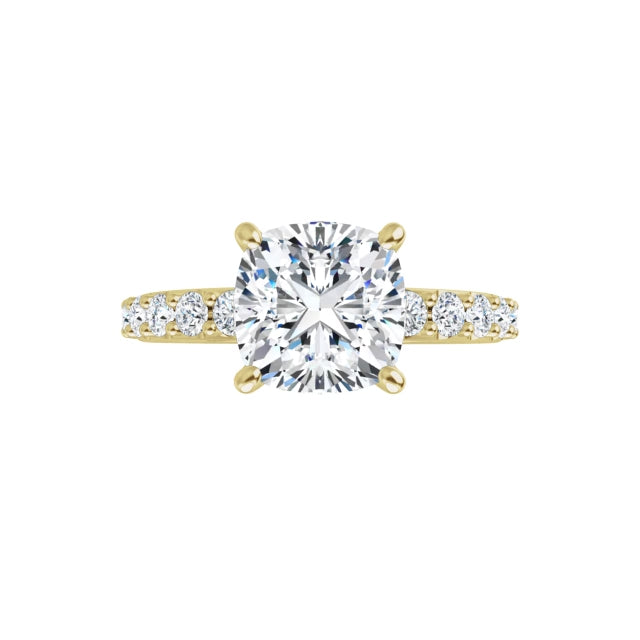 This design pairs quiet sophistication with a secret surprise—a slim row of pavé accents nestled below the center diamond, adding a soft glow that only you truly notice. From above, the look is sleek and clean; from every angle, it’s layered with character.