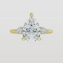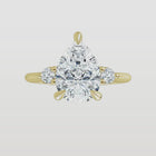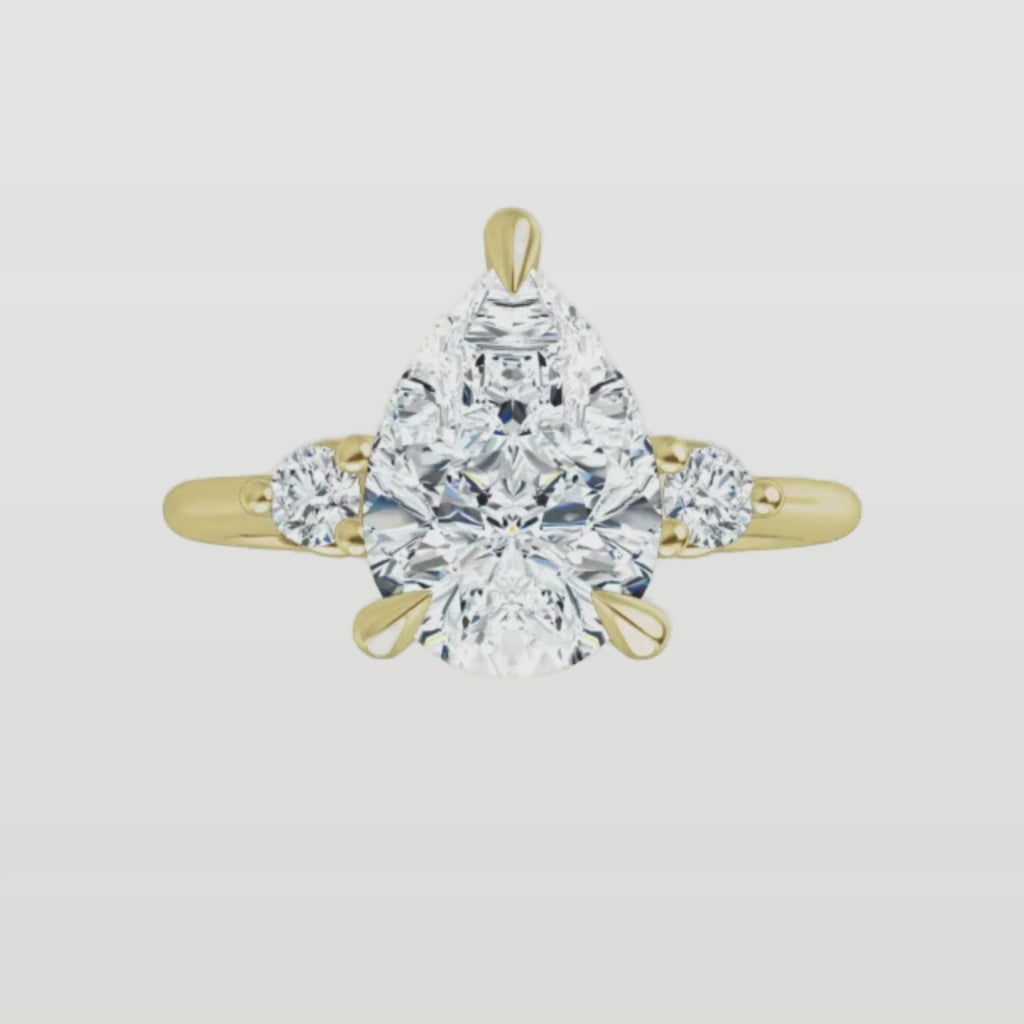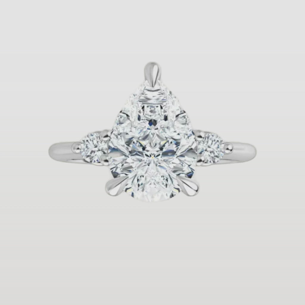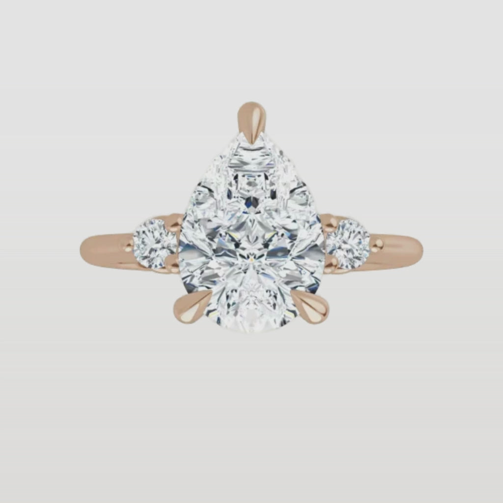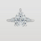 This ring features a center diamond beautifully flanked by a pair of side stones—adding just the right amount of sparkle and symmetry. The thoughtful design enhances the center stone’s brilliance without overpowering it, creating an elegant and harmonious look.