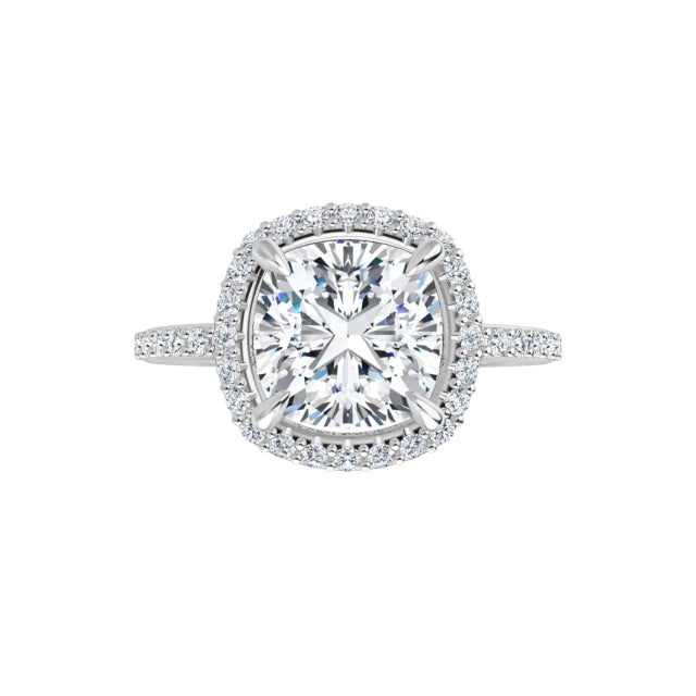 This halo ring surrounds the center diamond with a delicate pavé halo, lighting it up from every angle with refined brilliance. It’s a design that feels timeless and elegant, yet gently draws the eye to the center stone’s natural beauty.