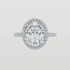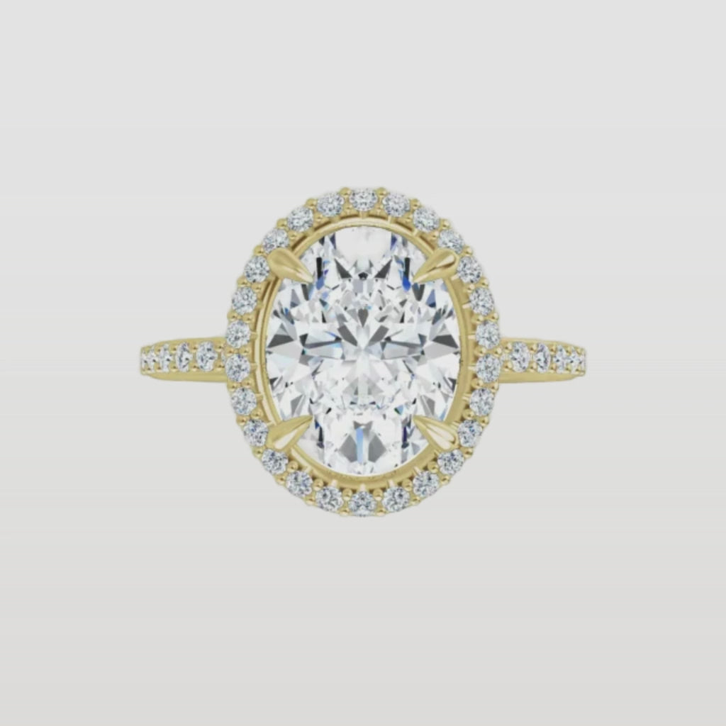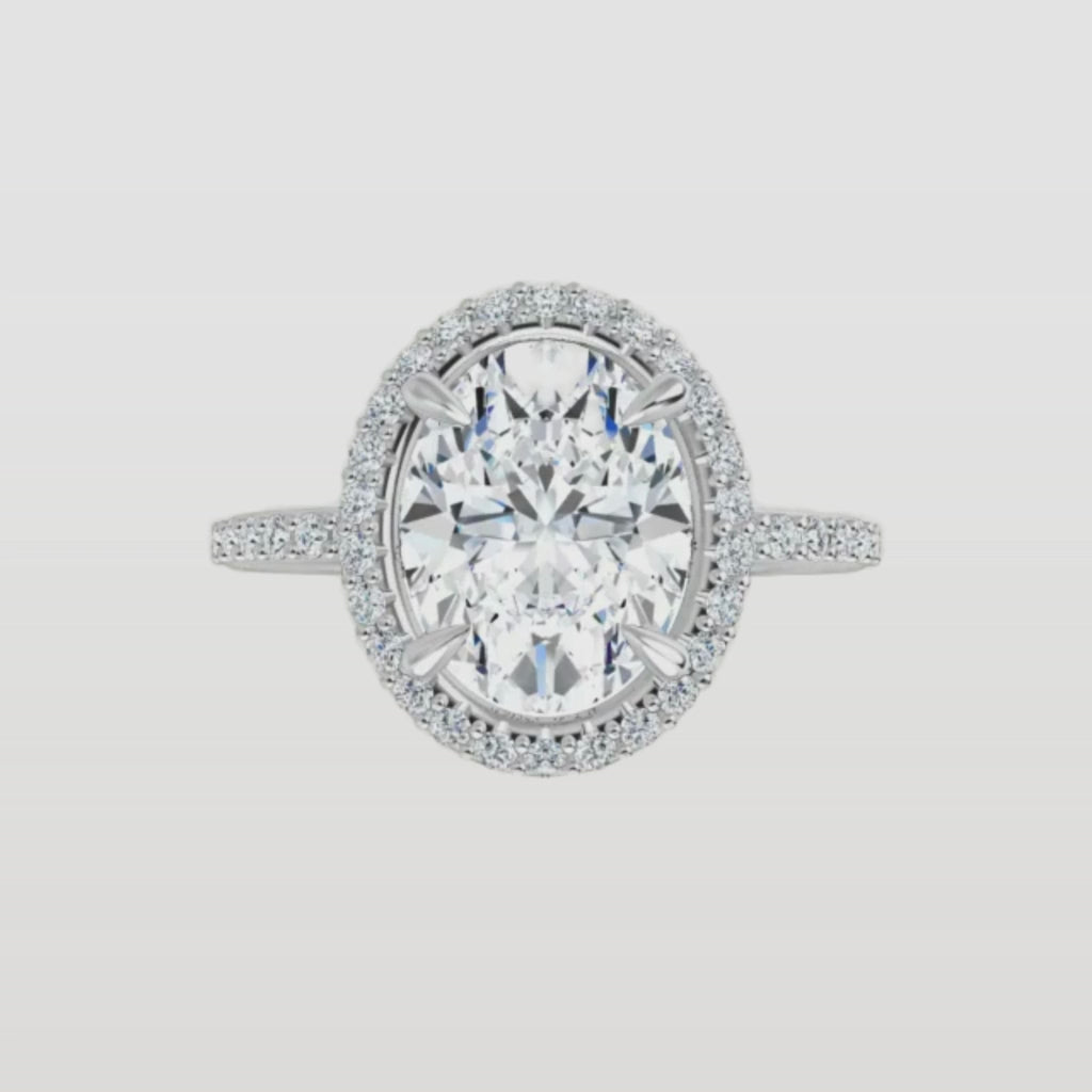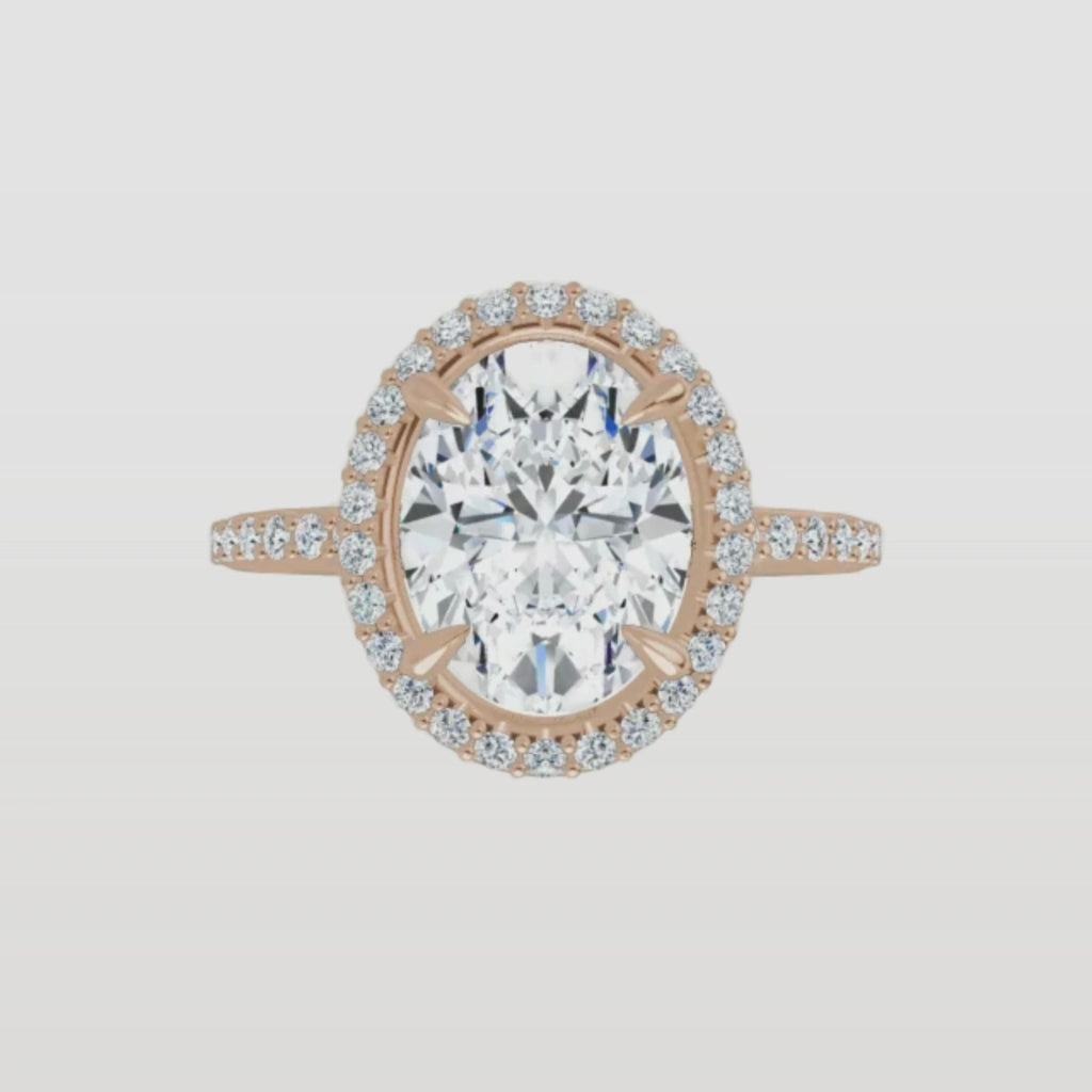 This halo ring surrounds the center diamond with a delicate pavé halo, lighting it up from every angle with refined brilliance. It’s a design that feels timeless and elegant, yet gently draws the eye to the center stone’s natural beauty.