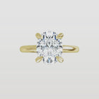 Made from 14k recycled gold in yellow, white, or rose, the slim band balances comfort with lasting elegance. Whether you choose round, emerald, oval, pear, or cushion, this ring frames your diamond with graceful confidence.
